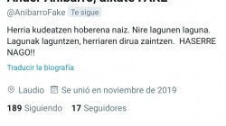 - Se ha creado un perfil falso en redes sociales con el objetivo de ridiculizar y, por lo tanto, faltar al respeto con publicaciones que buscan humillar al regidor local - Para sorpresa de EAJ-PNV Laudio, el grupo municipal de EH-BILDU sigue desde su perfil oficial de Twitter a la cuenta que suplanta al alcalde